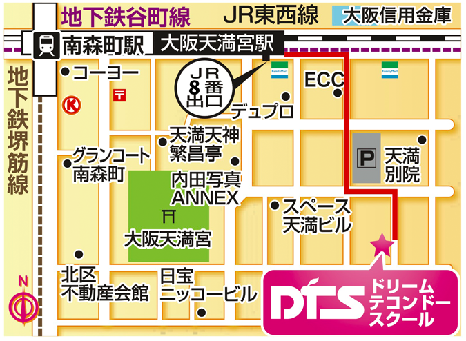 - JR東西線大阪天満宮駅東改札8号出入口より…徒歩3分